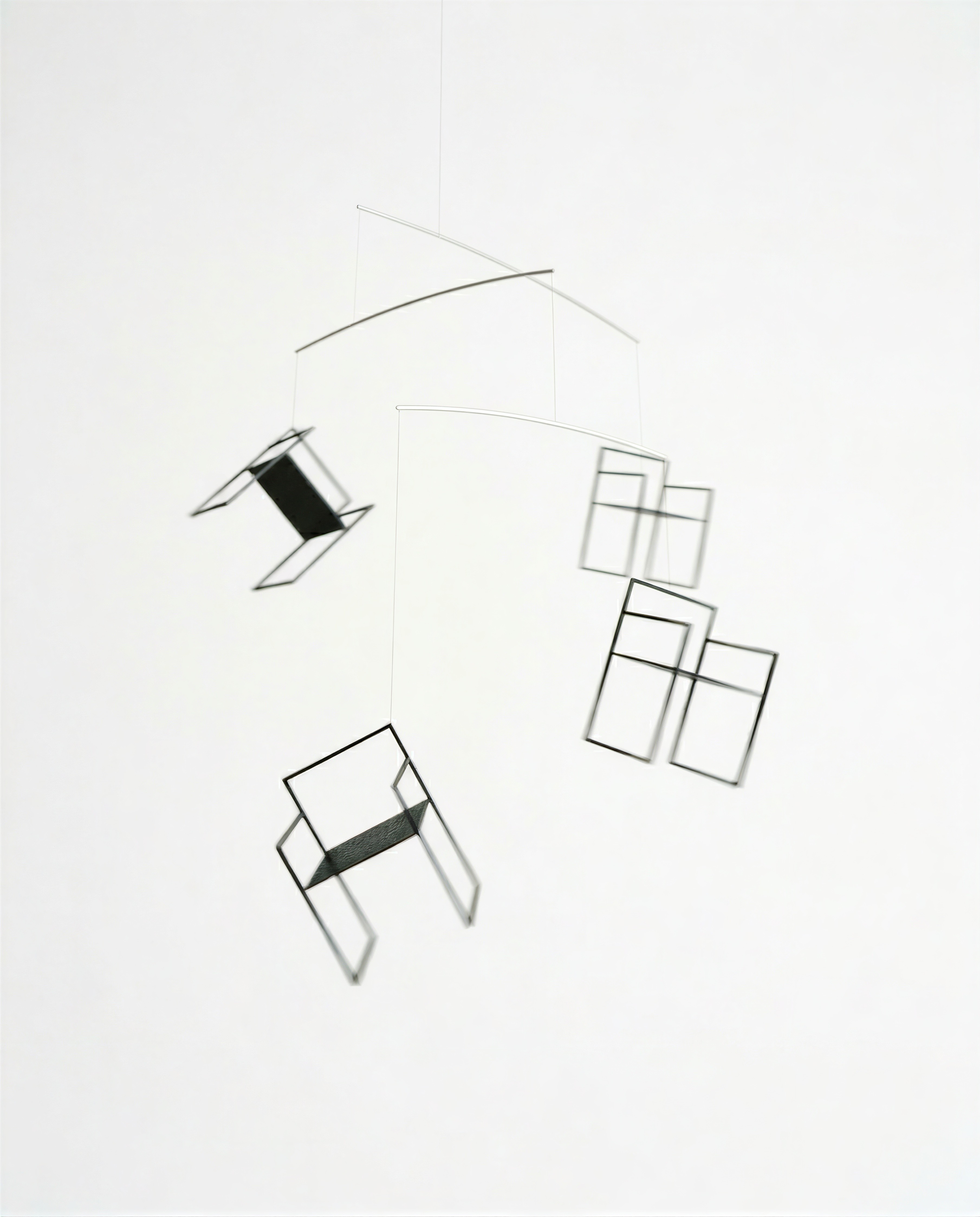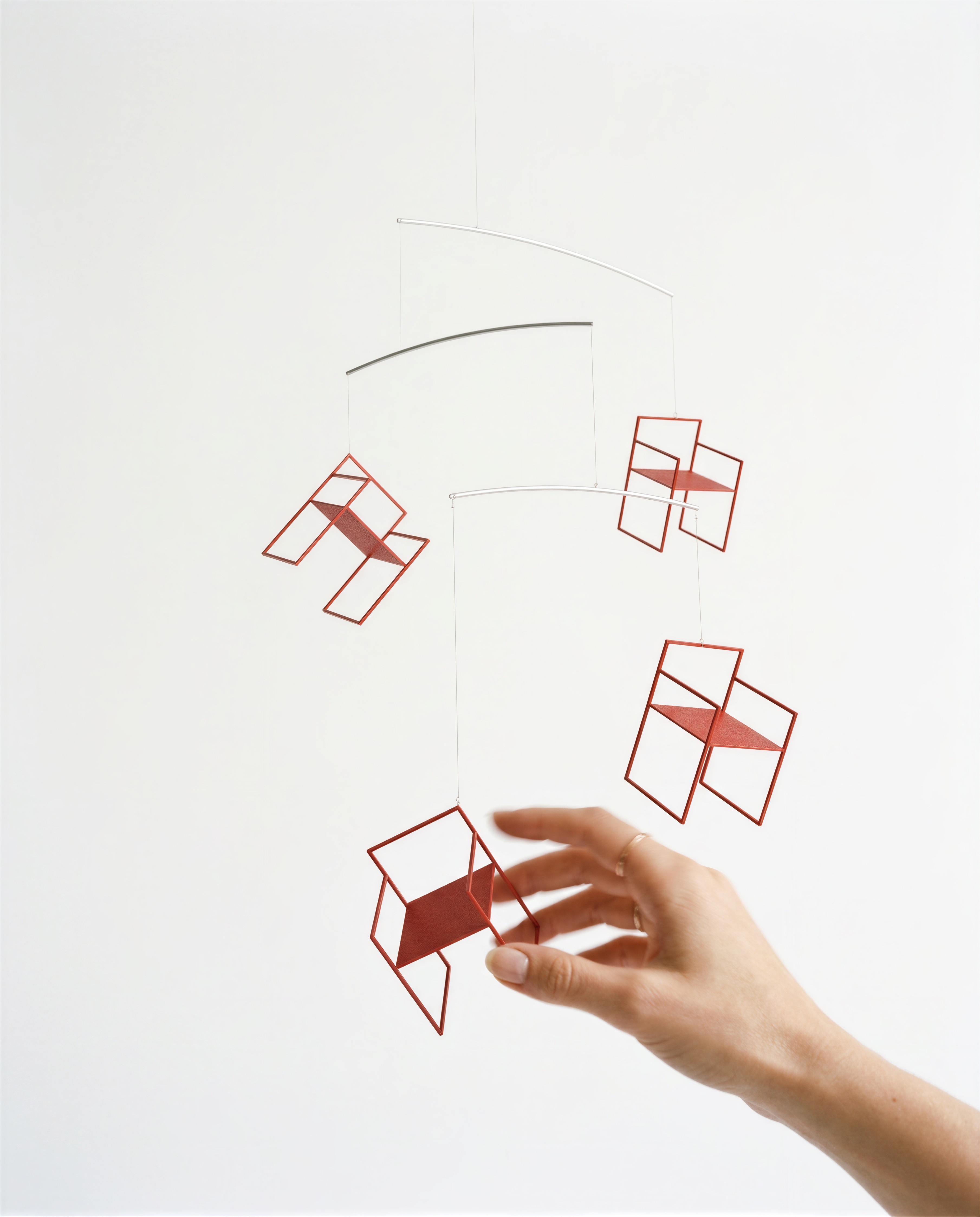The Chair Mobile translates our chair into a floating composition, where balance and movement define the form.